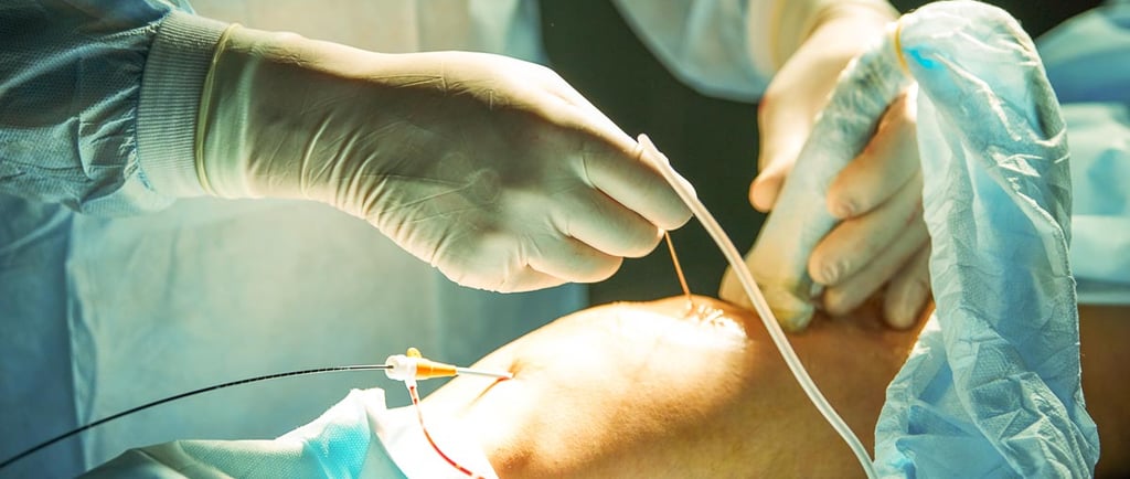 In this technique a fine tube (catheter) connected to radio-frequency energy (like microwaves) machine is used to heat up the inside of the defective vein causing it to block off. The catheter is threaded up the vein to treat the main defective vein, either the long saphenous or short vein, which are the usual culprits causing varicose veins. The procedure is usually performed whilst you are awake and is regarded as a “walk in walk out procedure”. Most varicose veins are suitable for this treatment but some aren’t in which case foam sclerotherapy or surgery may be option. When I assess during your consultation, I will be able to tell you which treatment is most suitable for you. In many cases treatment this treatment may be sufficient but in some additional treatment of the varicosities or lumpy veins may be required by foam sclerotherapy. This may be done at the same sitting or on a separate occasion.