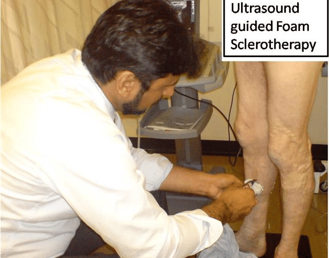 Foam sclerotherapy is ideal for these types of varicose veins. This involves injecting a chemical “sclerosant” mixed with some air into the affected veins. It works in a similar way by disrupting the lining of the vein causing it to block off. This non-operative treatment can be done as a “walk in walk out “procedure in clinic.