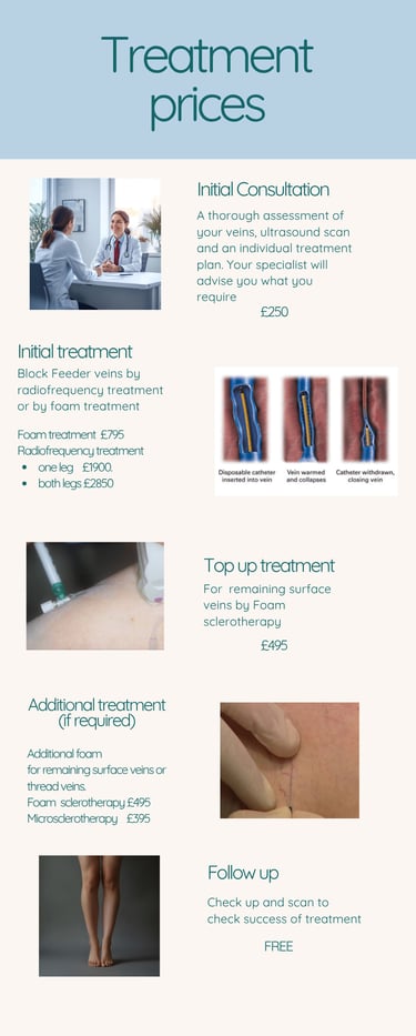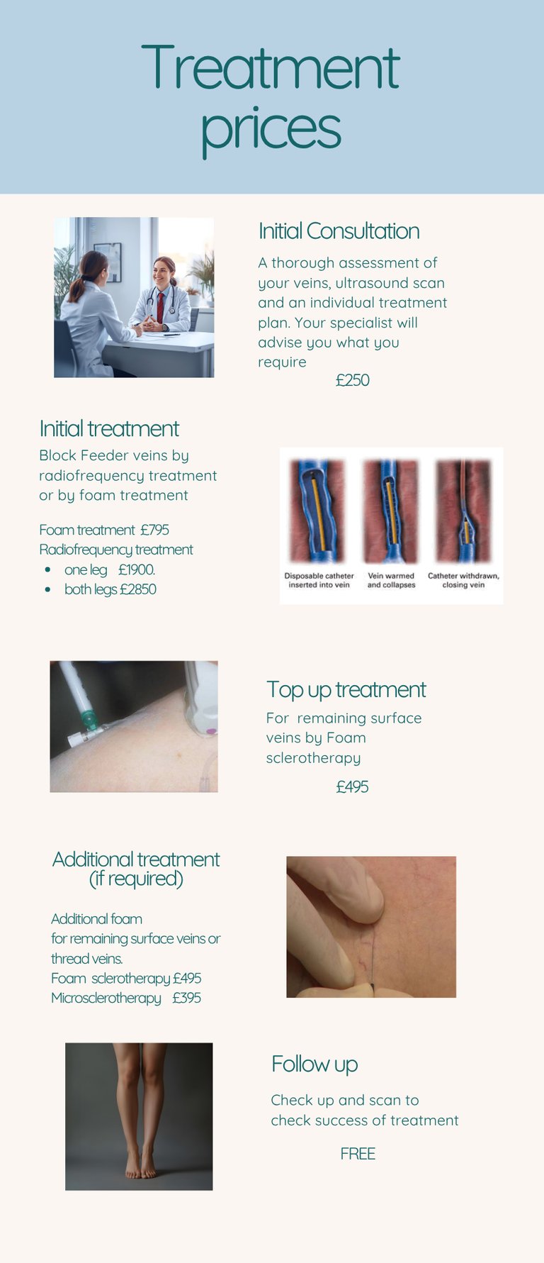 Your journey begins with a thorough initial assessment, followed by treatment of the main vein and then surface veins.