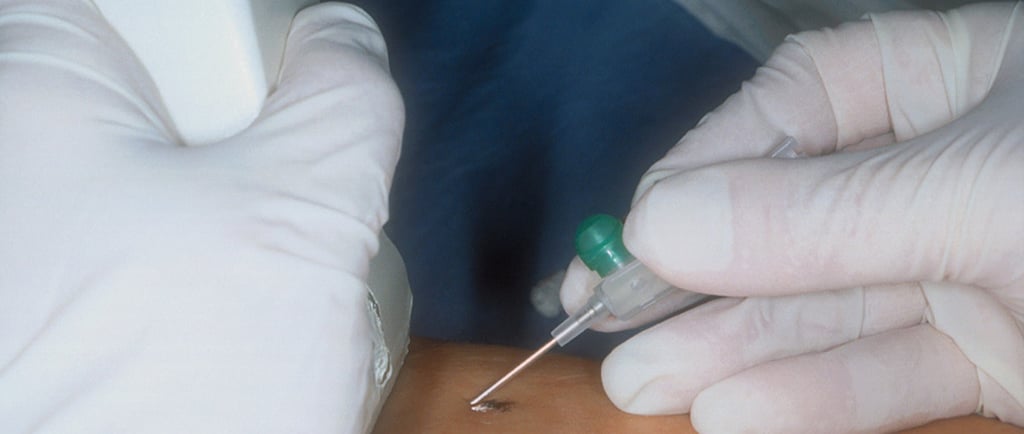A fine catheter is inserted into the vein using ultrasound guidance